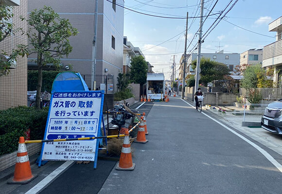 老朽化したガス管の入れ替えや漏洩箇所の修繕、新規パイプラインの埋設などを行っています。都市ガスの安定供給を支えるため、安全と迅速な対応を徹底。大規模災害時には、ガス協会の要請により復旧活動にも参加し、地域の暮らしに欠かせないインフラを守り続けています。