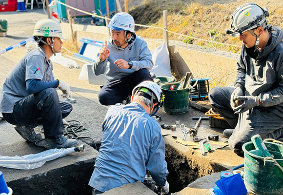 老朽化した上水・下水の管を新しく取り替える工事を中心に、下水道工事なども手がけています。地域の生活に欠かせない水のインフラを安全・確実に整備し、住民が安心して暮らせる環境づくりに貢献。確かな技術と丁寧な施工で、快適で衛生的な街づくりを支えています。